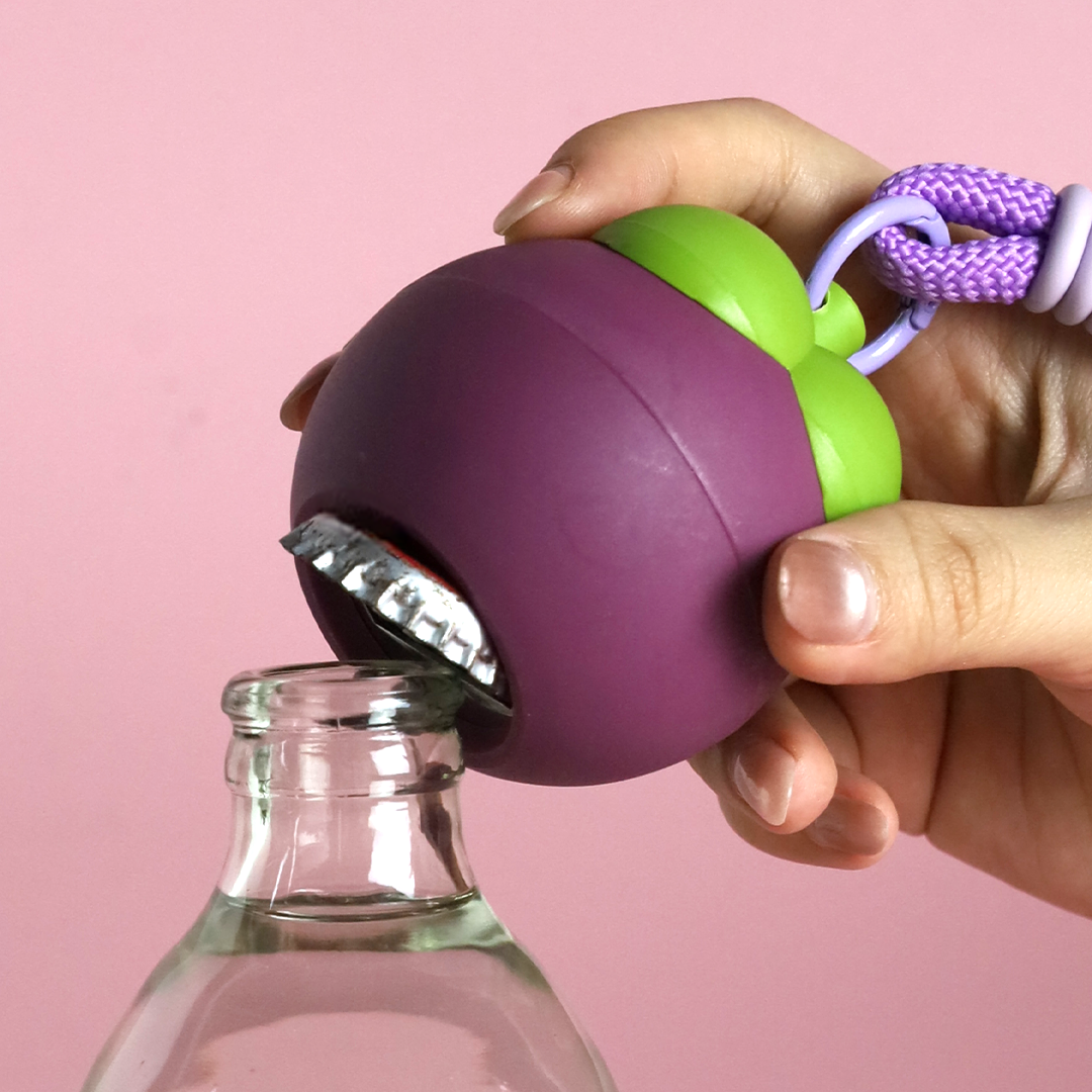 ฿339.00Mangosteen, dubbed the ‘Queen of Fruits,’ boasts a crown-like appearance, with luscious white flesh and a sweet taste, packed with health and beauty benefits. Although it’s a tropical fruit that can be grown in Thailand, climate change nowadays severely impacts agriculture. Mangosteen bottle opener made from recycled plastic can help reduce global warming, which affects crop cultivation